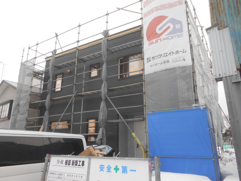 外壁業者は午前中除雪、午後からようやく本作業したそうです