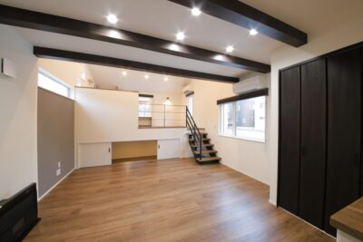 リビングの奥には中二階(スキップ)があり癒しの空間
